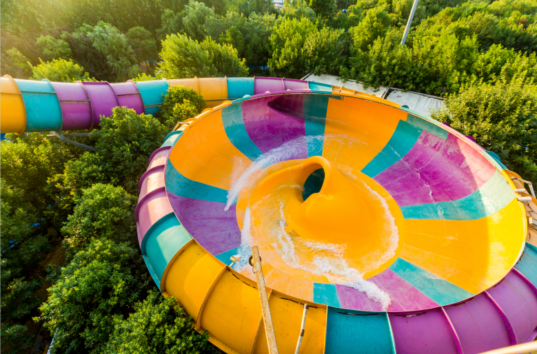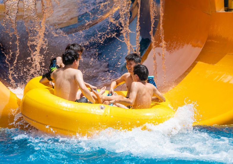 接近45%的高速之旅,伴随呼啸的水流俯冲至滑道最低点,再“飞跃”至滑道最高处在冲天回旋的刺激中,体会肾上腺飙升的快感。