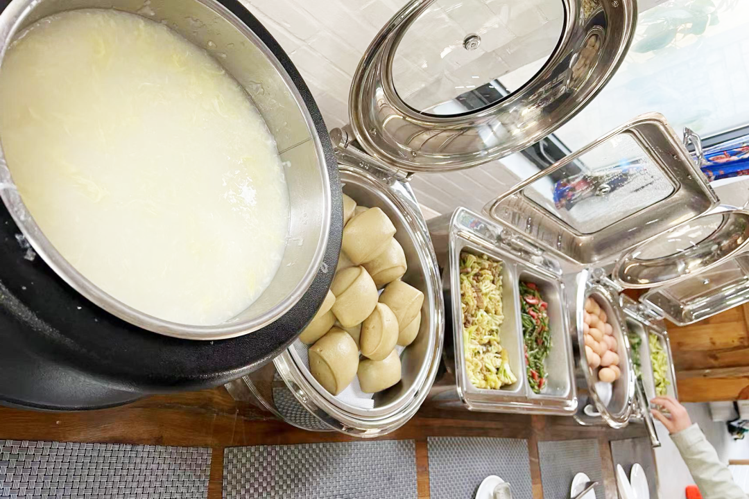 早餐就交给沙窝的“厨房子”。早餐为自助形式,各种新鲜的小菜和营养可口的粥,既开胃又温暖。